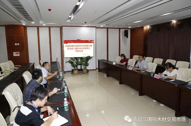 2020年8月3日下午,陜西林業(yè)集團(tuán)木業(yè)有限公司副總經(jīng)理王磊一行三人來到青白江國際木材交易中心參觀交流,公司總經(jīng)理助理汪永福、副總經(jīng)理張力鏷、信息發(fā)展部經(jīng)理彭莎熱情接待了來訪嘉賓。