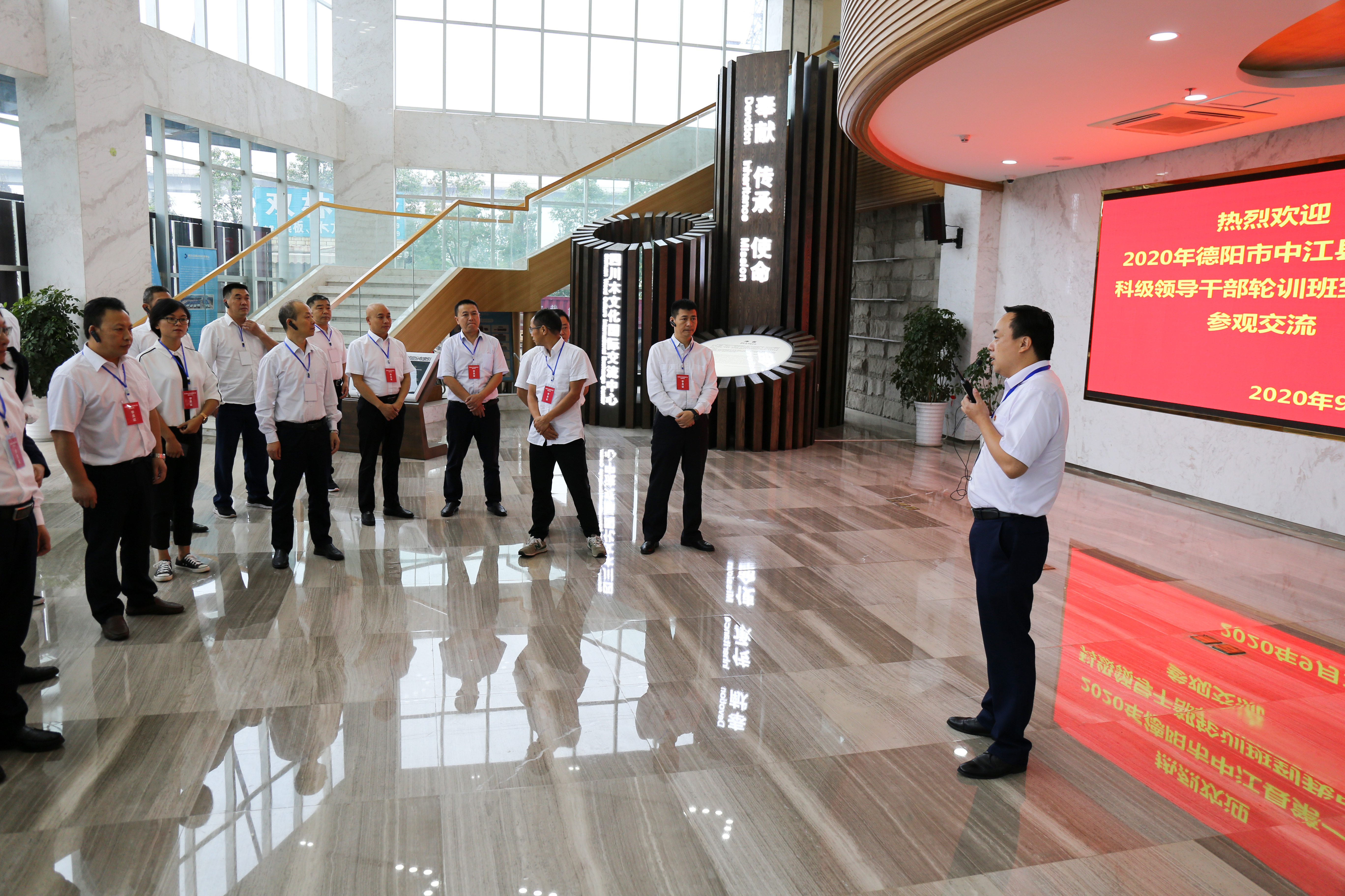 9月16日,由德陽市中江縣縣委常委、組織部長、黨校校長蔣定坤帶隊的2020年德陽市中江縣第一期科級領(lǐng)導(dǎo)干部輪訓(xùn)班共計110人到我中心參觀交流。我中心總經(jīng)理何仕海陪同解說。
