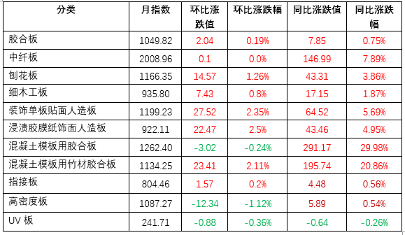 中國(guó)木材價(jià)格指數(shù)人造板分類指數(shù)漲跌表