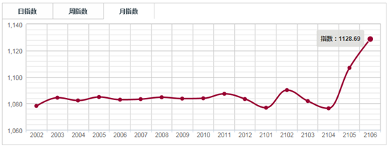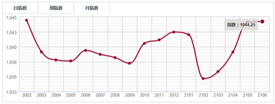 中國(guó)人造板分類指數(shù)月指數(shù)走勢(shì)圖