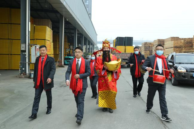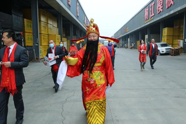 “新年到,祝福到,財神到咯!”1月20日喜氣洋洋的吆喝聲伴隨著鑼鼓喧天和喜慶的音樂分別從青白江國際木材交易中心的A區(qū)、B區(qū)和C區(qū)市場中傳出。跟隨著好奇的商家們出門一看,赫然發(fā)現(xiàn)市場里竟然真的迎來了“財神爺”!