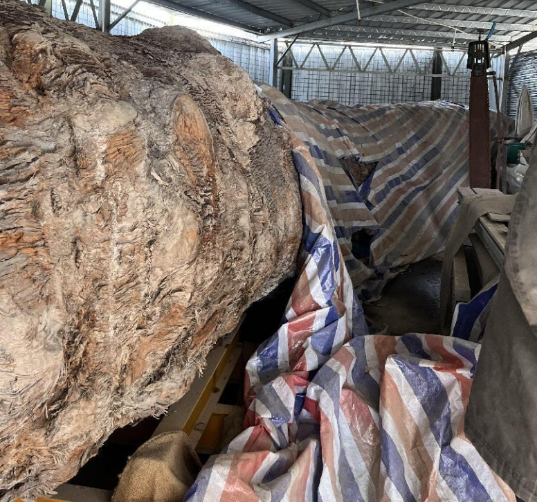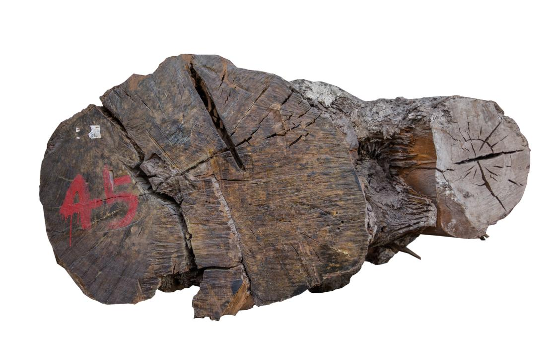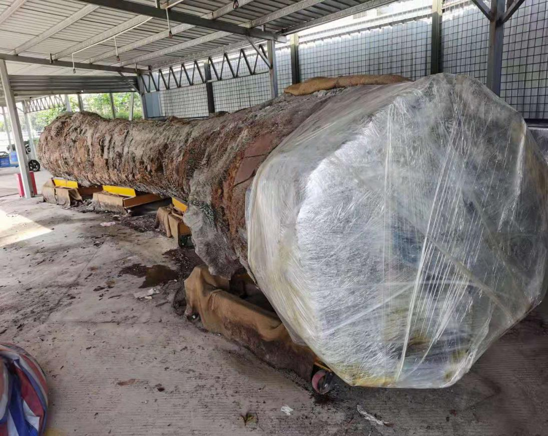 ④半邊材(陰沉木):長(zhǎng)2.2-4.9m;直徑70-180cm;約11件。