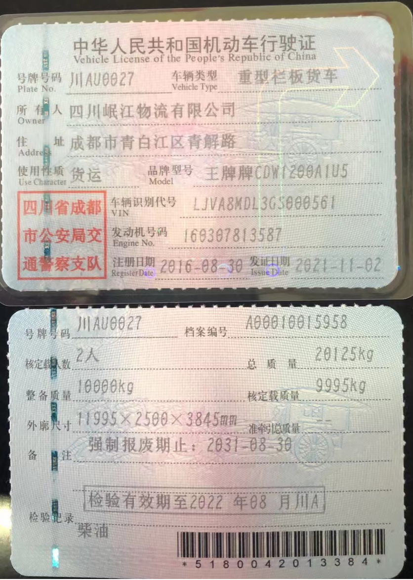 1. 兩臺王牌牌貨車(川AU0027、川AT9371)租期兩年(2022年9月3日至2024年9月3日);