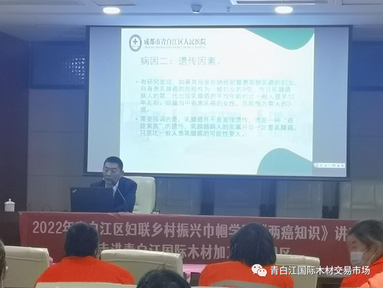 近年來,乳腺癌和宮頸癌已經(jīng)成為女性健康的兩大殺手,為進(jìn)一步增強(qiáng)園區(qū)廣大女性的健康知識(shí),營造關(guān)愛女性健康的良好氛圍,2022年11月3日,青白江國際木材加工貿(mào)易園區(qū)婦女聯(lián)合會(huì)在公司第一會(huì)議室開展了“兩癌”知識(shí)講座,園區(qū)50余名婦女群眾參加。