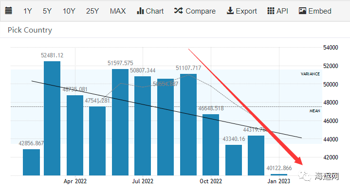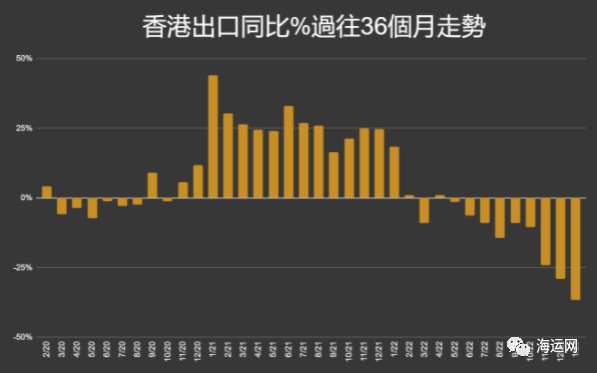 受到全球需求疲軟及農(nóng)歷春節(jié)假期雙重影響,香港2023年1月出口比去年同期下跌36.7%至2909億港元,創(chuàng)下1953年9月以來即70年來最大跌幅。