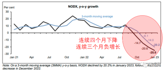 香港最大的競爭對手——新加坡,其外貿(mào)情況怎么樣呢?2023年1月份,新加坡關(guān)鍵的非石油國內(nèi)出口(NODX)同比大跌25%,創(chuàng)2013年以來最大單月跌幅,跌幅大于市場預(yù)期,連續(xù)兩個月跌幅超過20%,并且連續(xù)四個月下降。