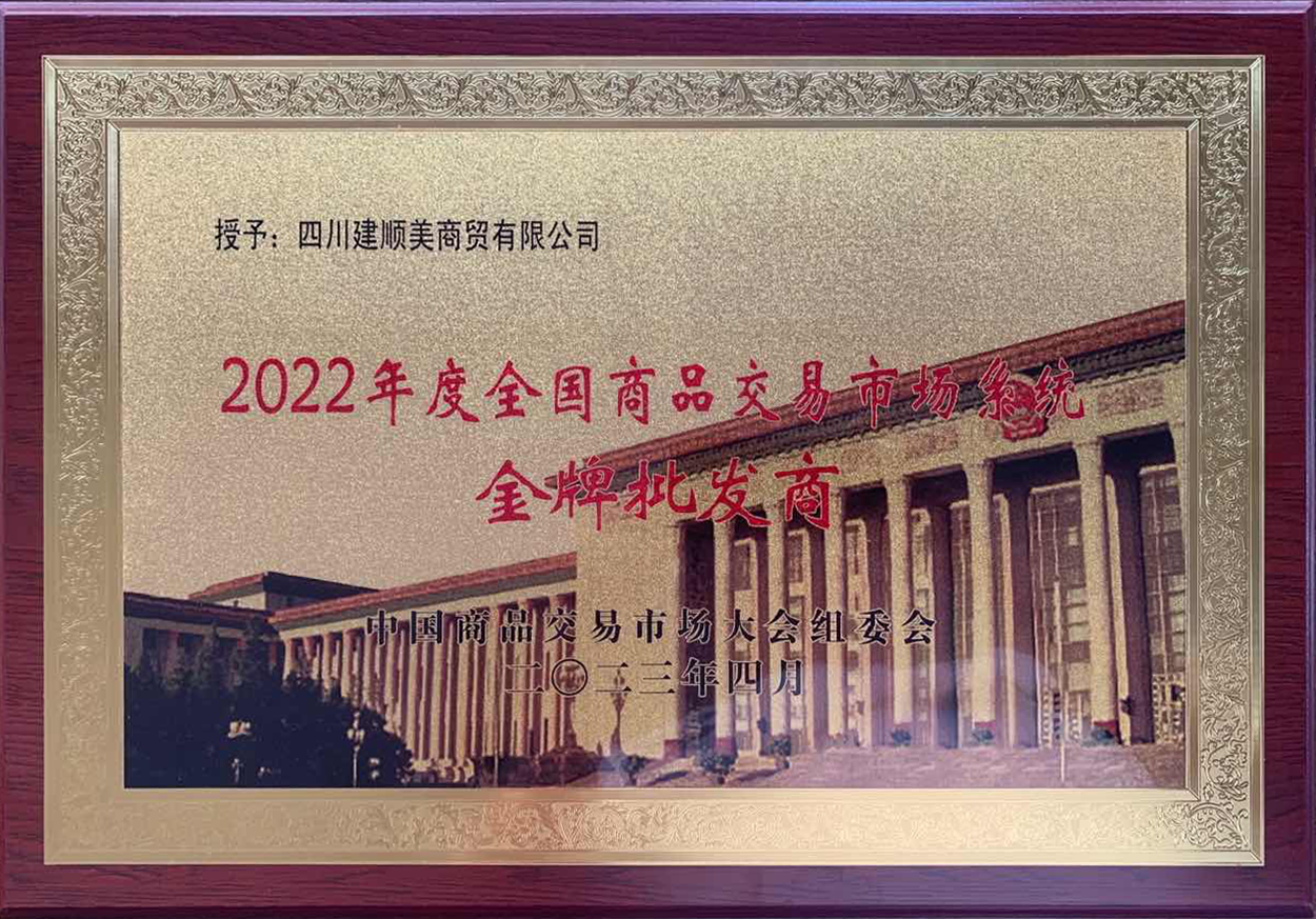 四川建順美商貿(mào)有限公司獲《全國(guó)商品交易市場(chǎng)——金牌批發(fā)商》