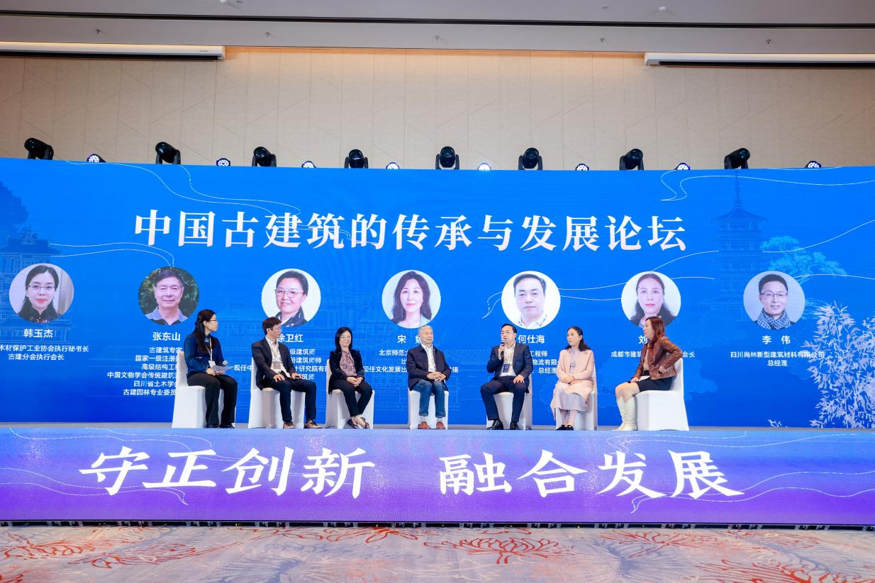 在中國(guó)古建筑的傳承與發(fā)展論壇環(huán)節(jié),公司總經(jīng)理何仕海結(jié)合四川木文化國(guó)際交流中心的運(yùn)營(yíng)談了自己的看法。何仕海認(rèn)為,木結(jié)構(gòu)古建筑作為中國(guó)傳統(tǒng)建筑的主要形式,記錄了社會(huì)的發(fā)展變遷,反映了各地的民俗風(fēng)情,凝聚了古人的智慧,是人類(lèi)歷史文化的瑰寶。我們要保護(hù)好宣傳好木結(jié)構(gòu)古建筑,傳承和弘揚(yáng)好木結(jié)構(gòu)古建筑文化和技藝。我們要做好木結(jié)構(gòu)古建筑文化的收集整理和宣傳推廣,提高人們的木結(jié)構(gòu)古建筑保護(hù)意識(shí),我們木結(jié)構(gòu)古建筑從業(yè)者和行業(yè)管理部門(mén),要重視宣傳推廣工作,搭建好平臺(tái)、創(chuàng)新方式,讓更多的人認(rèn)識(shí)木結(jié)構(gòu)古建筑、了解木結(jié)構(gòu)古建筑、熱愛(ài)木結(jié)構(gòu)古建筑、投身木結(jié)構(gòu)古建筑工作中來(lái),從而推動(dòng)我國(guó)木結(jié)構(gòu)古建筑事業(yè)高質(zhì)量發(fā)展。