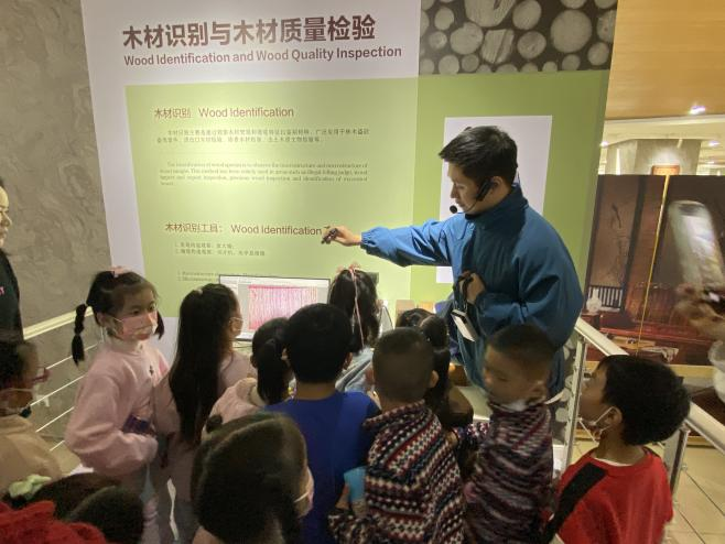小朋友和家長在講解員的帶領(lǐng)下,依次參觀了四川木文化國際交流中心的木人文展區(qū)、木科學(xué)展區(qū)、木教育展區(qū)、創(chuàng)意木工坊......孩子們從中接觸了做工精湛的斗拱模型、欣賞了造型優(yōu)美的木雕作品、感受了結(jié)構(gòu)獨(dú)特的木構(gòu)建筑、認(rèn)識(shí)了種類繁多的木材標(biāo)本、操作了專業(yè)精密的顯微儀器、體驗(yàn)了木作技藝的文化魅力,通過一系列木文化活動(dòng)的精神洗禮,使得在場的親子關(guān)系變得更加溫馨和諧。