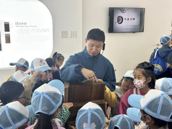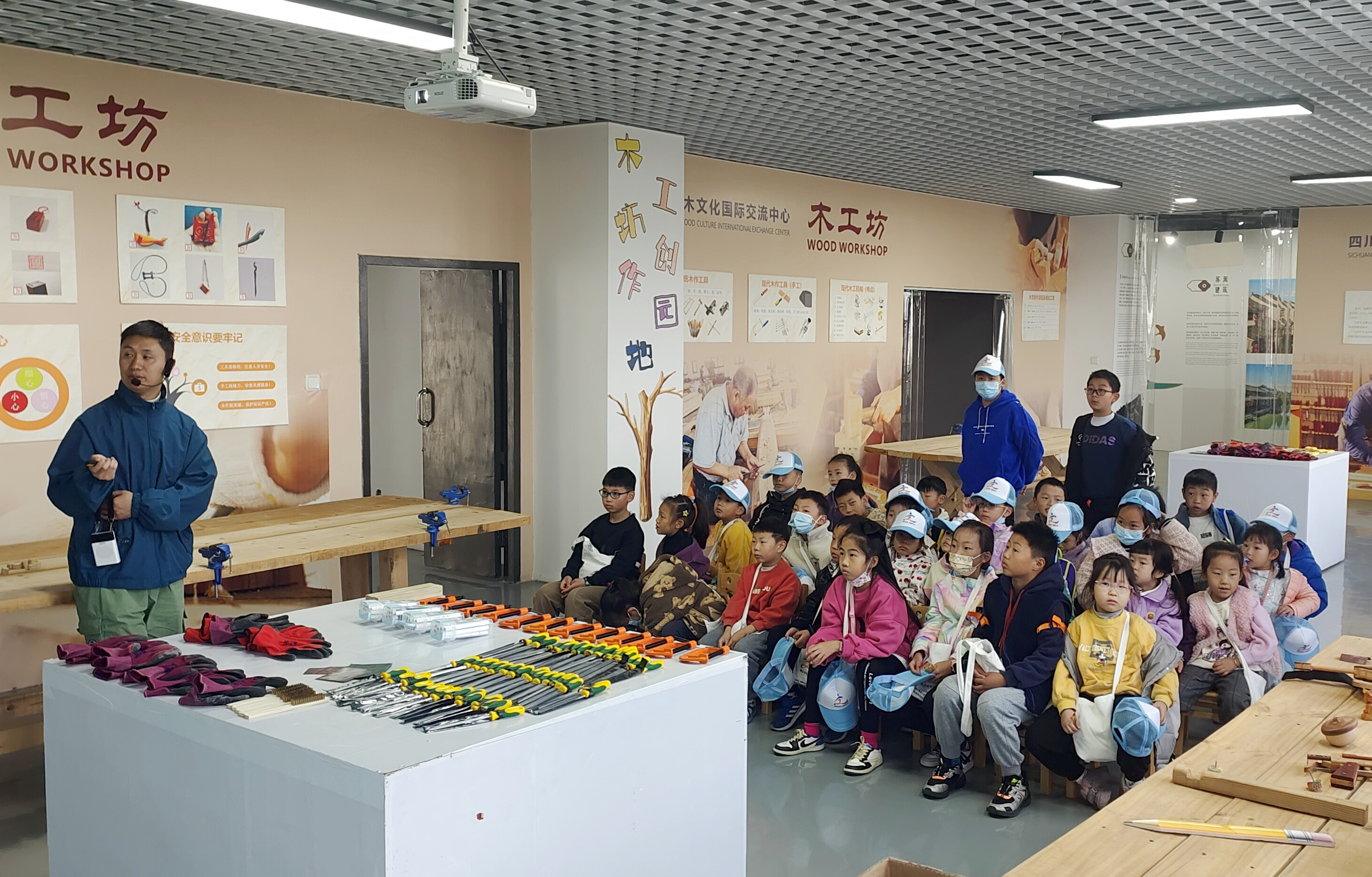 小朋友和志愿者們在講解員的帶領下,依次參觀了四川木文化國際交流中心的木人文展區(qū)、木科學展區(qū)、木教育展區(qū)、創(chuàng)意木工坊等區(qū)域。孩子們從中學習了木材標本的科學知識、領略了木構(gòu)建筑的精美工藝、體驗了木作技藝的文化魅力,通過一系列木文化活動的精神洗禮,使得在場的小朋友們受益匪淺。