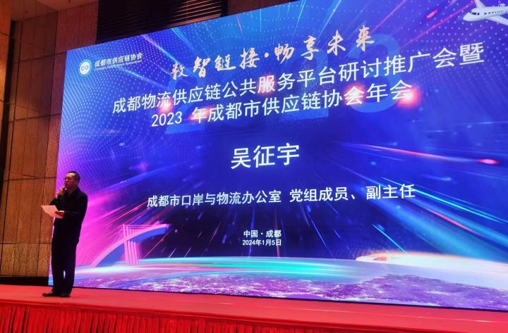 1月5日,由成都市口岸與物流辦公室、成都市民政局指導,成都市供應鏈協(xié)會等主辦的成都市物流供應鏈公共服務平臺研討推廣會暨供應鏈協(xié)會年會在成都市香格里拉大酒店舉行。青白江國際木材加工貿易園區(qū)園區(qū)負責人、公司執(zhí)行董事、總經理何仕海應邀出席。