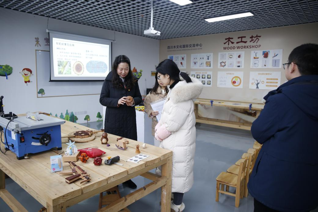 宣講會后,喬沛姝部長一行參觀了四川木文化國際交流中心,詳細(xì)了解中心木文化宣傳推廣有關(guān)情況,聽取了木文化運(yùn)營過程中存在的難題和對團(tuán)區(qū)委的工作建議。在木文化未來發(fā)展方向上,喬部長建議中心可以與區(qū)文旅局建立合作聯(lián)系,開展更多公益性和專業(yè)性木藝制作活動,加大木文化中心的宣傳推廣力度,實(shí)現(xiàn)木文化中心更長遠(yuǎn)的發(fā)展。