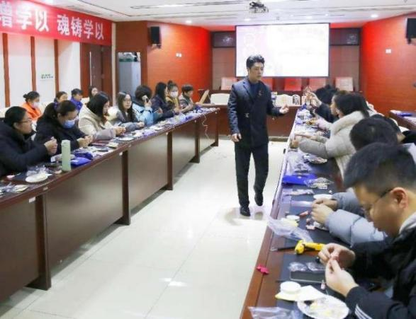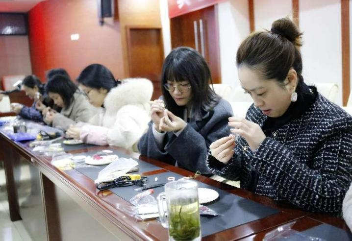 胸針又稱胸花,是一種使用搭鉤別在衣服上的針狀小裝飾品,因其獨特的色彩、造型能與得體服飾相配,能給人一種“畫龍點睛”的時尚美感,顯現(xiàn)女性婀娜多姿的魅力,而深受女性的喜愛。本次活動由物流公司信息發(fā)展部的胥可作為主講老師,他一邊向大家介紹胸針制作的材料及工具,一邊示范胸針的制作步驟,同時為了讓大家有機會多了解中國的傳統(tǒng)文化和傳統(tǒng)手工技藝,胥老師還特地向大家介紹和教授了中國非物質(zhì)文化遺產(chǎn)項目絨花和纏花的制作方法,瞬間吸引了在場女士們的目光。當大家看到老師提前做好的胸針樣品和其他手工藝品時,都無不驚嘆“胥老師有一雙巧手”,女同胞們都迫不及待地參與到胸針的制作過程當中。胸針看似小巧,可最需要的就是制作過程中的耐心和細心,雖然大家都是第一次制作,但在胥老師手把手的指導下,大家也從最初的并不熟練變得很快就上手了,從材料選取開始搭配、串連、固定,時而為搭配凝視思考,時而為花式擺弄造型。經(jīng)過近三個小時的努力,一枚枚精致小巧的胸針從大家的手中誕生。大家一致認為自己親手制作的胸針“最”好看,更是屬于自己“私人訂制”的節(jié)日禮物。