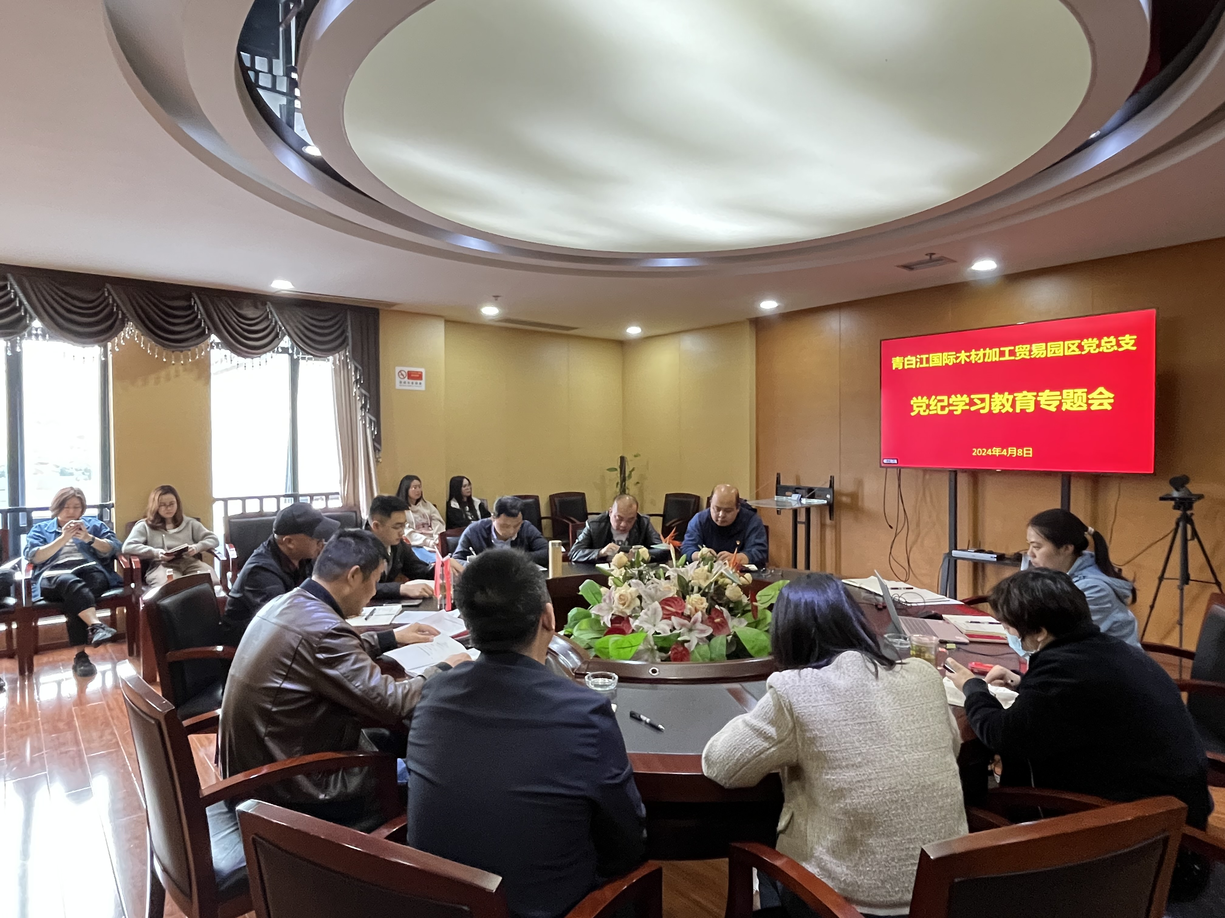 4月8日下午,青白江國際木材加工貿(mào)易園區(qū)黨總支召開黨紀(jì)學(xué)習(xí)專題會議。會議由黨總支書記宋詩偉主持,黨總支委員、各支部書記、廉潔風(fēng)險重點(diǎn)部室職工共計(jì)19人參加會議。