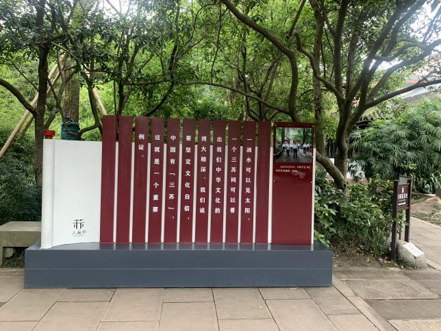 三蘇祠是北宋文學(xué)家蘇洵、蘇軾、蘇轍的故居,元代改宅為祠,明末毀于兵火,后于清代康熙四年在原址上重建。2022年習(xí)近平總書記在參觀考察三蘇祠時曾強調(diào):“一滴水可以見太陽,一個三蘇祠可以看出我們中華文化的博大精深。我們說要堅定文化自信,中國有‘三蘇’,這就是一個重要例證?!贝舜未河?,我們正是沿著習(xí)近平總書記的足跡,懷著無比崇敬的心情邁入三蘇祠的文化世界,領(lǐng)略其蘊含的歷史意義和時代價值。