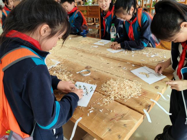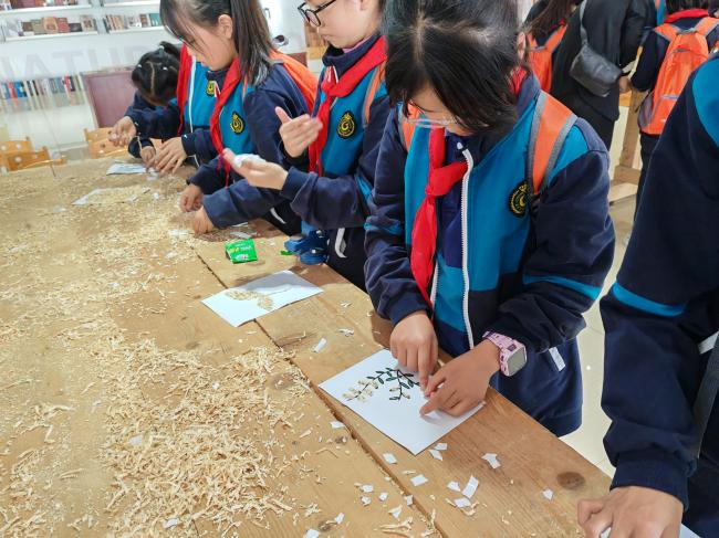 活動的手工體驗環(huán)節(jié)將現(xiàn)場氣氛推向高潮。同學們充分發(fā)揮創(chuàng)意,以木刨花為原料,創(chuàng)作出一幅幅精美的畫卷,讓傳統(tǒng)文化在指尖綻放新彩。這一過程中,青少年們不僅鍛煉了動手能力,更在實踐中深切體會到傳統(tǒng)手工藝的魅力,將科學創(chuàng)新與傳統(tǒng)文化有機融合,轉(zhuǎn)化為自身成長的精神養(yǎng)分。